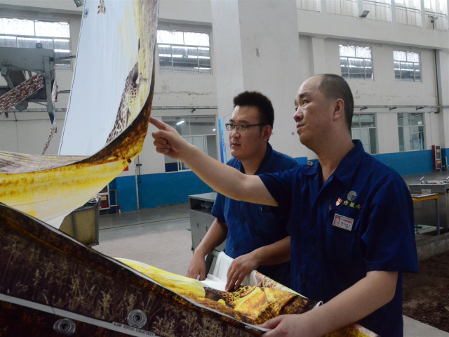在公司科技產(chǎn)業(yè)園花布平網(wǎng)印制車間,化料、調(diào)漿、安裝刮刀……孫維生正忙著和同事們進(jìn)行開車前的準(zhǔn)備工作。經(jīng)過前期安裝和調(diào)試,公司進(jìn)口的兩臺(tái)平網(wǎng)印花機(jī)及相關(guān)配套系統(tǒng)已達(dá)到批量生產(chǎn)的要求和能力??粗闷骄W(wǎng)印花機(jī)生產(chǎn)出來的花布產(chǎn)品,大家在心里為公司未來的發(fā)展更加充滿了信心。