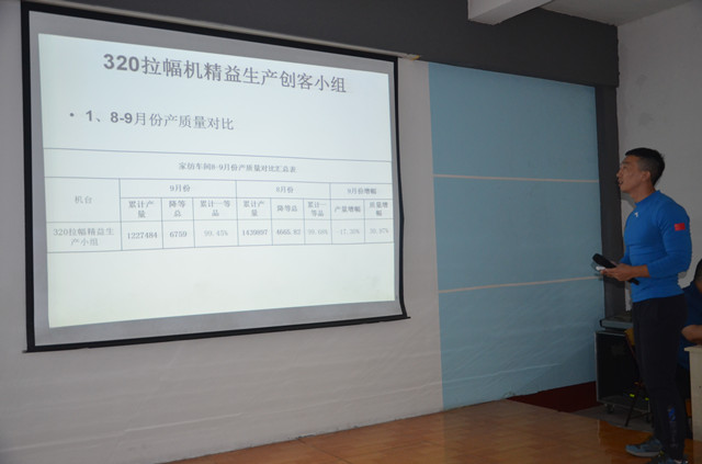 10月11日,公司家紡車間在職工大學大教室舉行了9月份精益生產(chǎn)總結會,對車間9月份的精益生產(chǎn)運行情況進行總結,并對相關問題進行剖析。各主要精益生產(chǎn)承包小組對自身的成績以及不足進行總結,并制定了后續(xù)改進計劃和提升目標。會議由車間技術主管鄭凱主持,車間主任王旭洲進行了全面總結并對持續(xù)深化精益生產(chǎn)工作提出了新要求。
