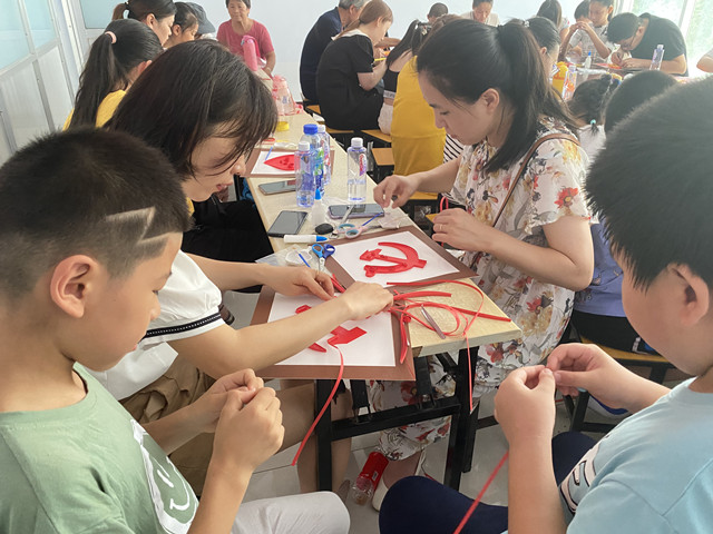 在本次活動中,手工老師給大家講述了中國共產黨的發展歷程,黨徽的構成部分、由來及其代表的意義,并為大家示范了黨徽的制作過程。隨后,員工與員工子女一道,用博物館發放的制作材料,全神貫注地開始動手制作,涌現出了一批心靈手巧的“能工巧匠”。