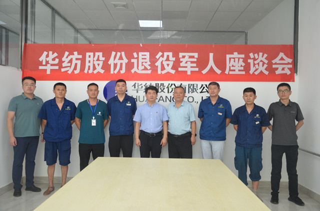 參加當(dāng)天座談會的公司在崗?fù)艘圮娙舜恚壕C合車間主任劉新利、倉儲管理部染化庫搬運隊長王金慶、花布車間計劃主管尹東、家紡車間前處理輪班長孫鎮(zhèn)、面料車間維修工段長張連江、華紡置業(yè)公司物業(yè)主管李傳建、電氣車間自動化工程師王利彬等先后發(fā)言。他們簡要回顧了各自的軍營生活以及頑強、堅韌的人生積淀,介紹了退役進入公司后的成長經(jīng)歷以及繼續(xù)在公司平臺上提升自我、創(chuàng)新突破的愿望與目標(biāo)。