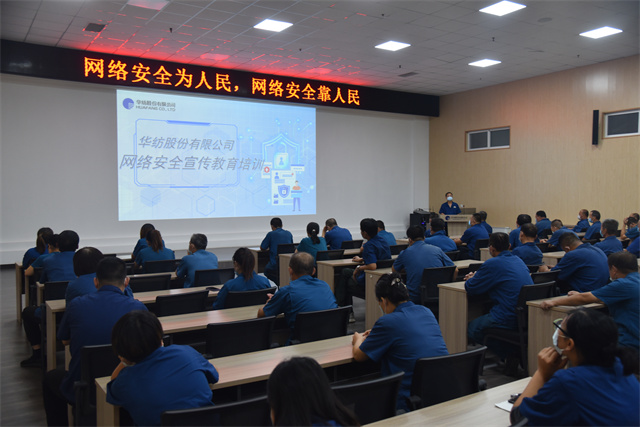 導(dǎo)讀:9月8日,華紡股份有限公司組織開(kāi)展了以“網(wǎng)絡(luò)安全為人民,網(wǎng)絡(luò)安全靠人民”為主題的網(wǎng)絡(luò)安全宣傳培訓(xùn)活動(dòng)。