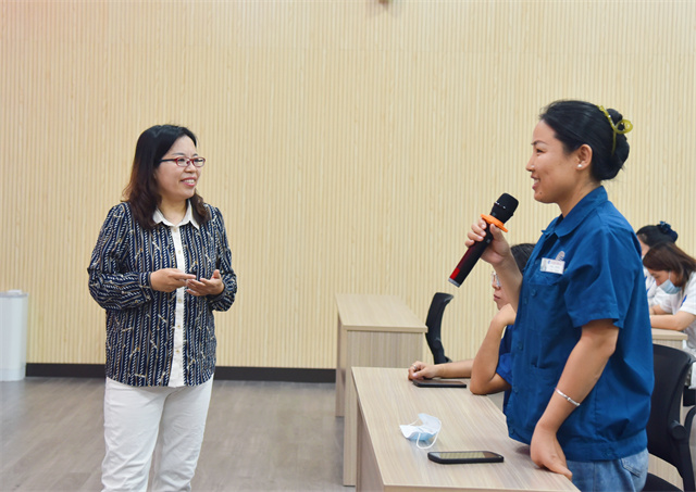 講座過程中,王春梅解讀了在家庭教育中“表達情緒”代替“用情緒表達”的內(nèi)涵和意義。在就如何引導(dǎo)孩子正確感悟、培養(yǎng)孩子養(yǎng)成良好習(xí)慣、給予孩子成長力量等方面,通過講理論、舉實例、現(xiàn)場討論等形式,深入淺出的為女職工進行了分析和授課。