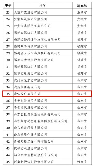 11月21日,國家工信部辦公廳下發通知,公布全國重點培育紡織服裝百家品牌名單,公司名列全國54家制造品牌之列。