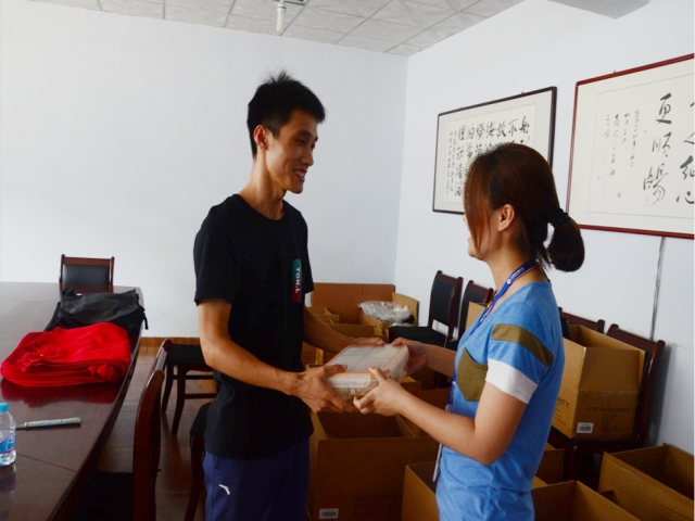 “吳青凱,生日快樂”,正在車間整理貨物的服裝公司業務員吳青凱聽到有人叫自己,一回身,只見營銷體系團支部書記姜琳紅把一份工作餐遞到手里??粗矍暗捏@喜,吳青凱開心的說:“原來今天是我的生日啊,謝謝公司對我們單身員工的關愛”。