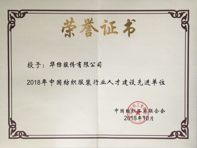 來自不同領域的專家學者圍繞紡織服裝人才建設進行了發言,同時,為進一步推進紡織行業“知識更新工程”人才建設培訓工作,加強紡織服裝人才隊伍建設,促進行業轉型升級發展,大會還對2018年中國紡織行業人才建設先進單位個人進行了表彰。公司憑借在人才建設上取得的成績,被授予“2018年中國紡織服裝行業人才建設先進單位”稱號,副總經理盛守祥獲得“2018年中國紡織服裝行業人才建設先進個人”稱號。